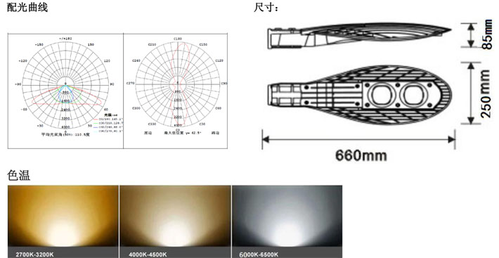 2.光學(xué)玻璃透鏡,可靠的二次光學(xué)設(shè)計及的角度定位,提高光照效果;有TYPEⅡ TYPEⅢ等多種配光方式,適用于二車道三車道四車道等多種路面;