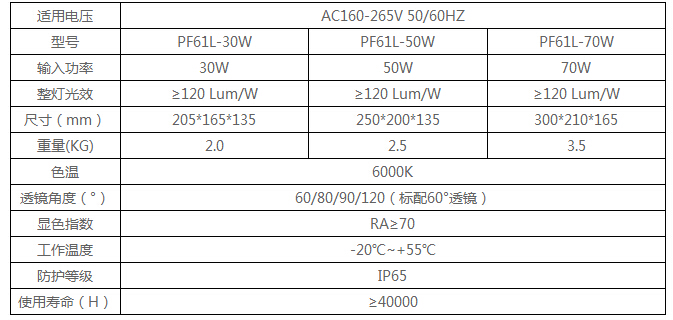 led投光燈主要參數