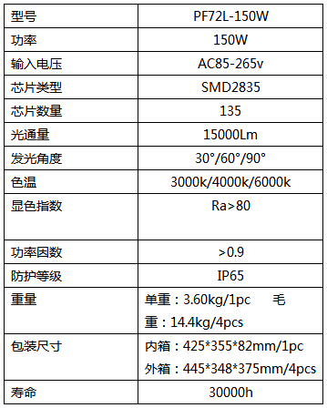 泛光燈技術參數