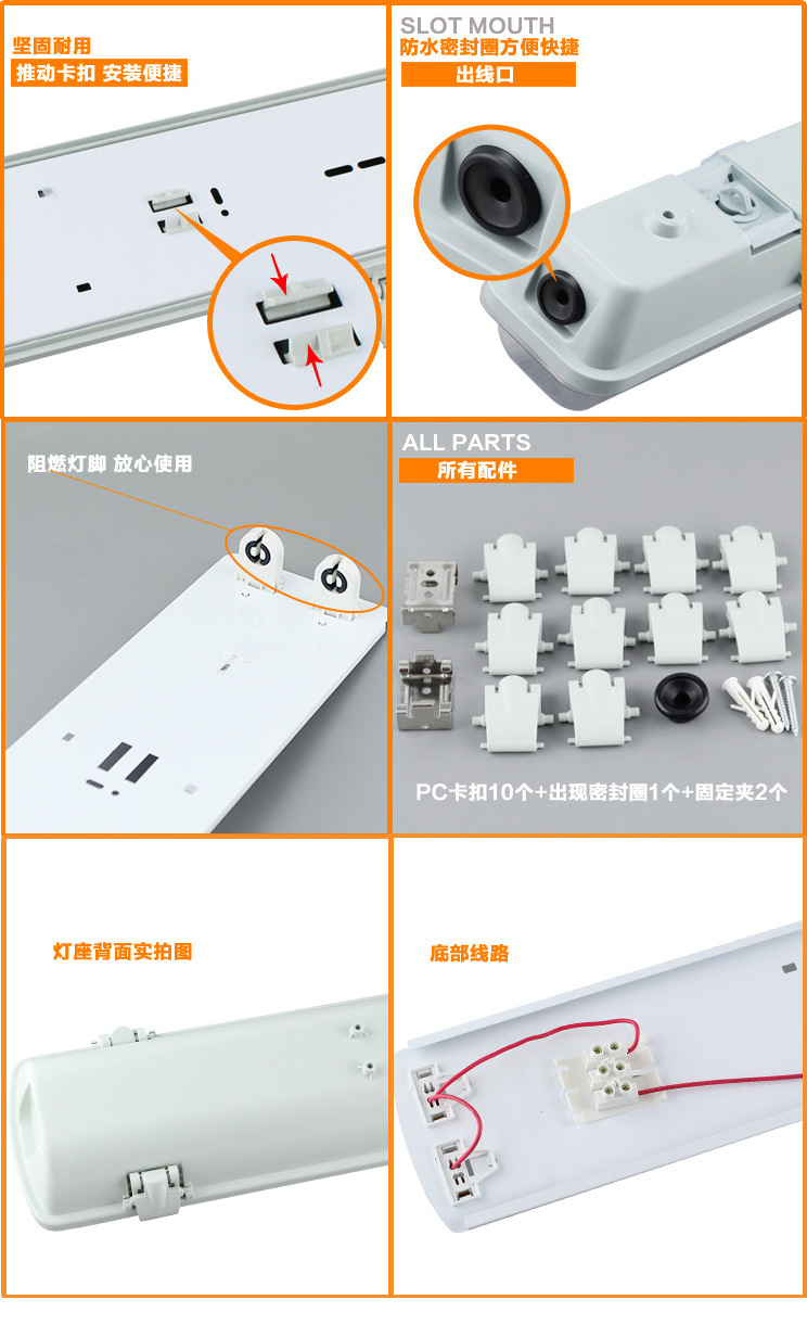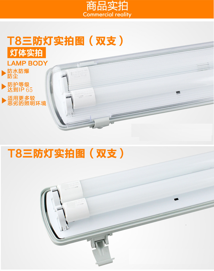 2:T8普通日光燈三防燈具,T8三防燈是一款應(yīng)用比較廣的燈具,是針對普通日光燈來設(shè)計(jì)的,有通用性,也是目前應(yīng)用較多的日光燈管。