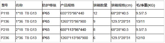 單管、雙管LED三防燈技術(shù)參數(shù):